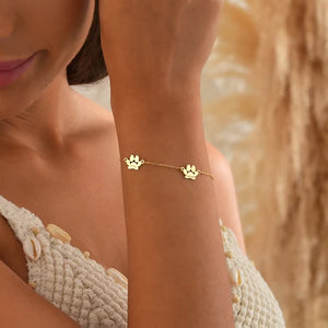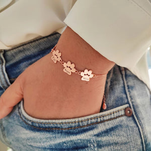 Exprimez votre amour avec notre bracelet personnalisé composé de 1 à 3 empreintes de pattes, gravées avec les prénoms de vos animaux de compagnie, enfants ou proches.